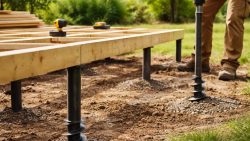 При строительстве террасы одним из ключевых этапов является выбор и установка фундамента. В случае использования свайного фундамента необходимо правильно рассчитать шаг между сваями для обеспечения устойчивости и долговечности