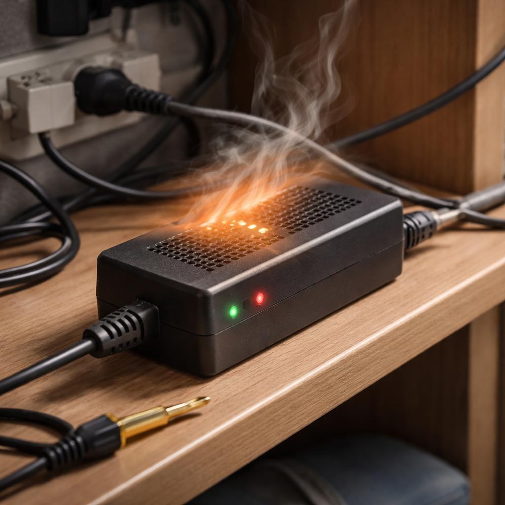Сначала снижается стабильность: появляются редкие сбои, которые легко списать на «плохой контакт» или «глюк». Затем растёт тепловая нагрузка — корпус тёплый даже при небольшой нагрузке. После этого возможны отказ стабилизации и защитные отключения. В худшем случае адаптер выходит из строя полностью и может повредить подключённое оборудование.