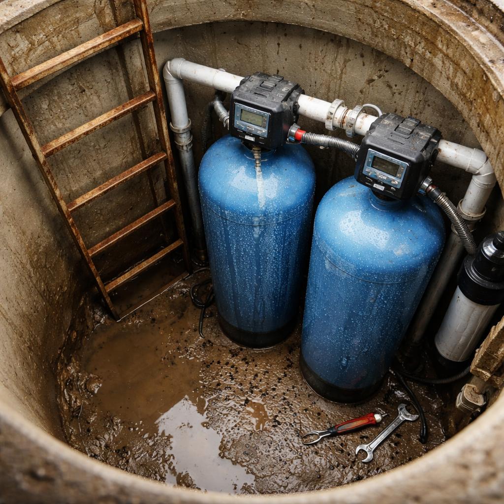 Системы с автоматической регенерацией, электроклапанами и дренажами особенно зависимы от условий. В кессоне для них возрастает риск отказа по «внешним» причинам, не связанным с качеством воды. Это проявляется в сбоях циклов, утечках при регенерации и ускоренном износе управляющих узлов.