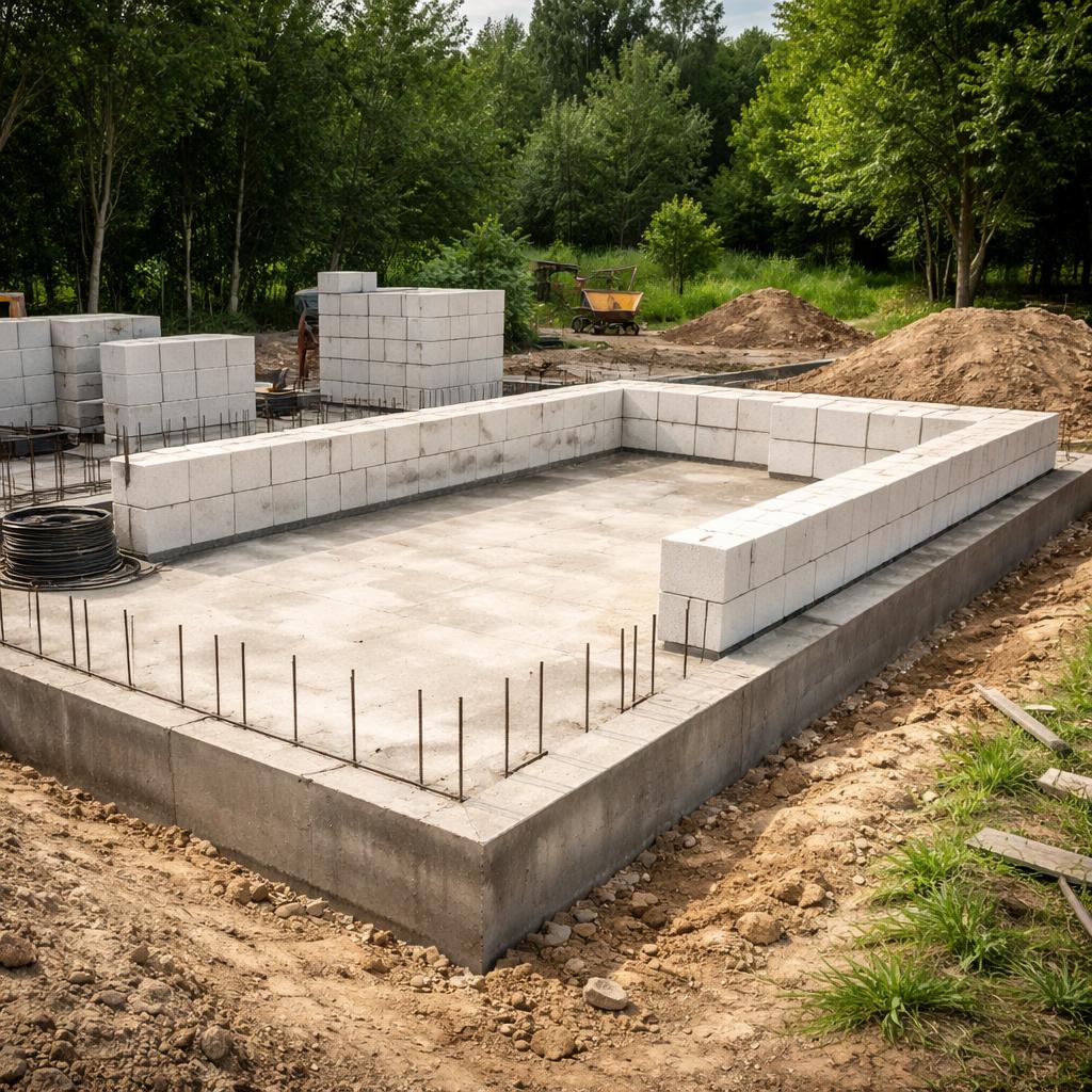 Поэтому фундамент под газобетонный гараж рассматривают не как несущую «подставку», а как элемент, обеспечивающий равномерность и предсказуемость поведения всей конструкции.