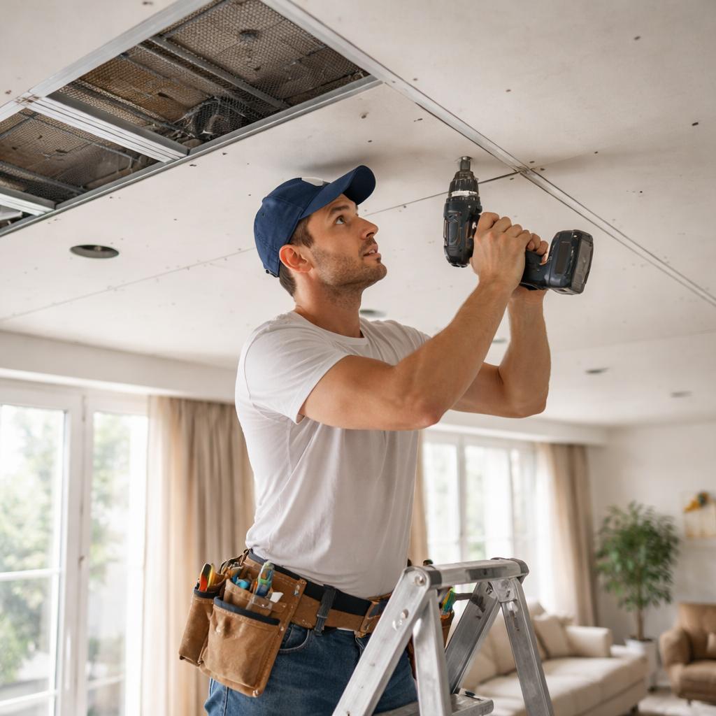 После подготовки материалов начинается процесс установки каркасной системы, которая является основой для крепления гипсокартона. Этот этап требует точности, так как от правильности установки каркаса зависит не только внешний вид потолка, но и его долговечность. После установки каркаса крепятся листы гипсокартона, и проводится финишная отделка: шпаклевка швов, грунтовка и покраска.