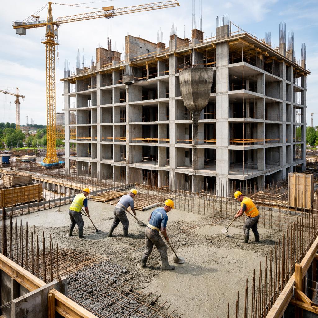 Кроме того, процесс строительства может быть подвержен погодным условиям, особенно в регионах с холодным климатом. Бетон должен иметь возможность правильно затвердевать, что требует определённых температурных условий.