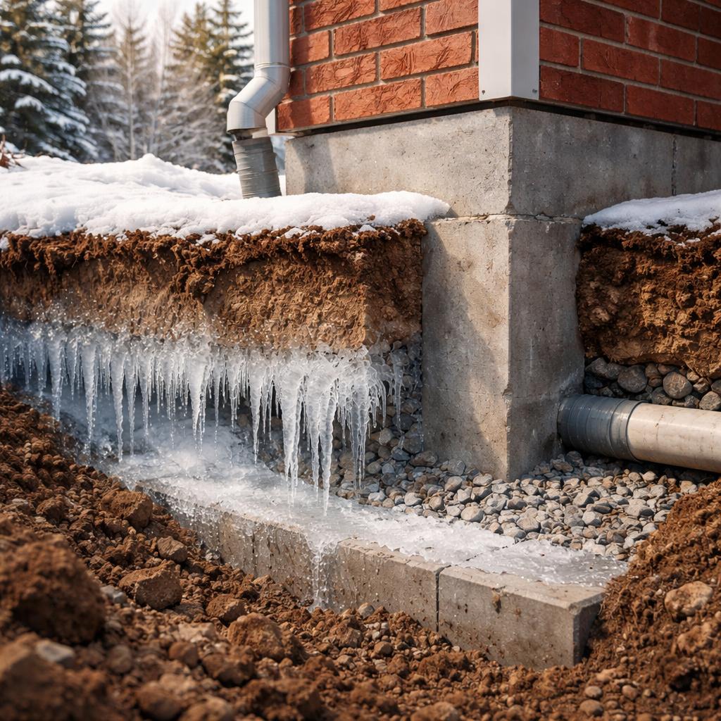 - Риск подъема грунта. Промерзший грунт, расширяясь, может оказывать давление на конструкции, что приведет к подниманию и деформации фундамента и полов. Особенно это актуально для строений с легкими или неустойчивыми конструкциями.