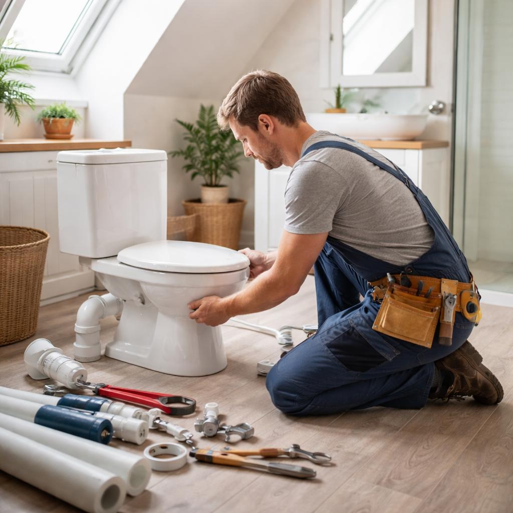 После прокладки всех труб можно переходить к установке самого туалета. Выбирайте устройство с учётом нагрузки на систему канализации и водоснабжения. Установите унитаз, следуя инструкции производителя, и подключите его к подготовленным трубам. Унитаз должен быть закреплён на полу с использованием подходящих крепёжных элементов. Важно убедиться в герметичности соединений, чтобы избежать протечек. - Проверка системы