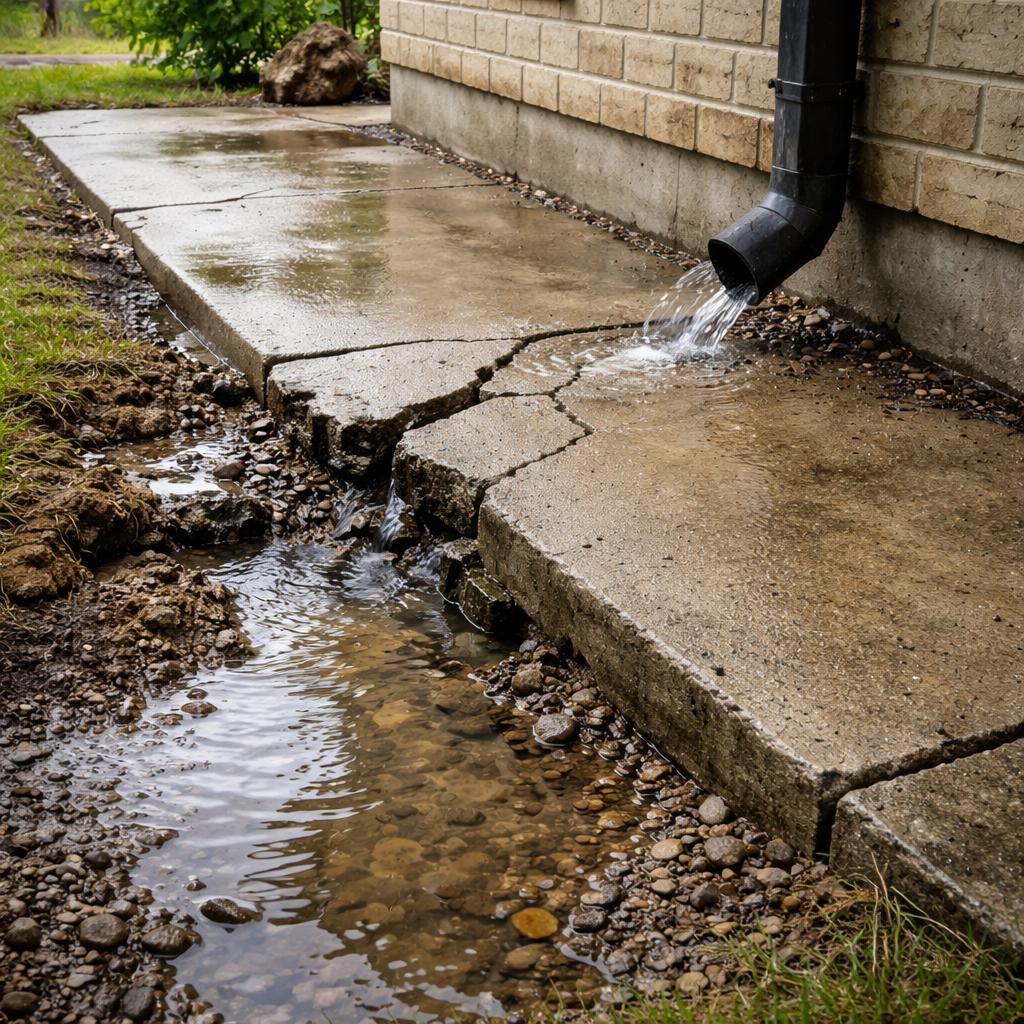 Одно из самых устойчивых заблуждений — идея о том, что трещины в отмостке являются исключительно эстетической проблемой. На практике трещина — это всегда изменение пути движения воды. Даже небольшое раскрытие может со временем привести к накоплению влаги в нежелательной зоне и усилению других проблем.