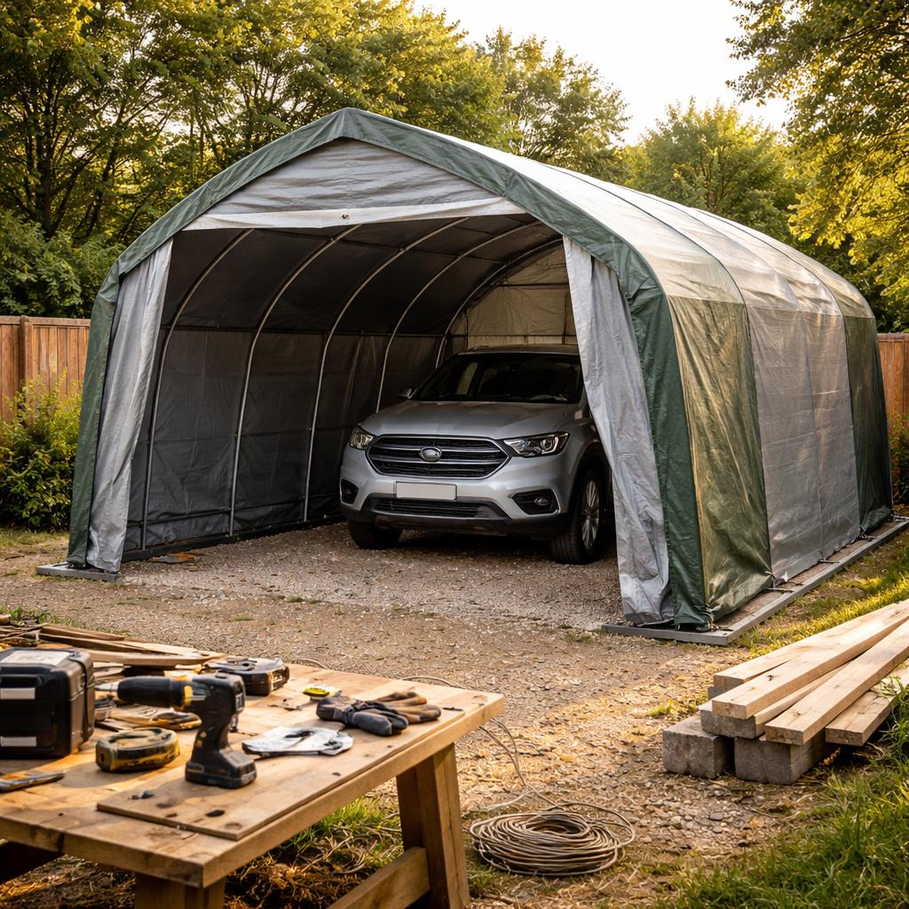 Материалы для временного гаража играют ключевую роль. Поскольку этот гараж не предполагает длительного использования, можно выбирать более легкие и доступные материалы. Основные варианты: